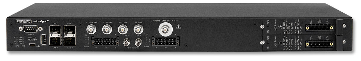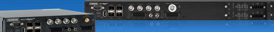 microSync serien erbjuder optisk eller elektrisk nätverksanslutning. Det finns ett urval av synkroniseringsinmatningsmöjligheter tillgängliga, till exempel 72 kanals Multi GNSS mottagare för GPS, Galileo, GLONASS och BeiDou.